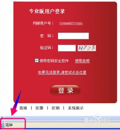 5、此时你会发现,用户网银号可以正常显示,而网页左下角不再提示网页错误了,输入帐号密码便可正常登录了