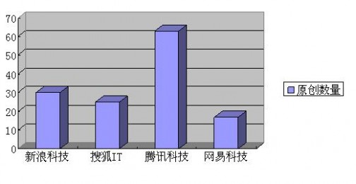 IT业界原创报道方面,腾讯科技表现出强劲的优势,远远领先于其他三家网站。新浪和搜狐在这方面的能力相差不多,网易表现最差。