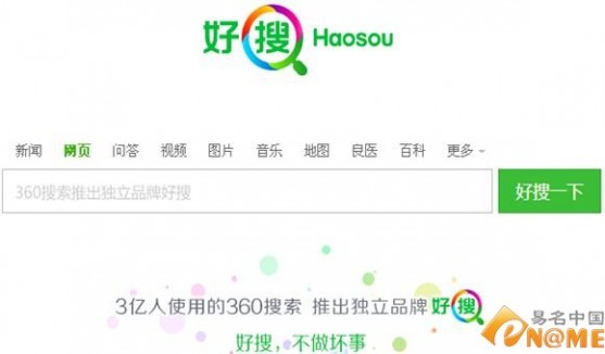 易名中国(eName.cn)1月6日讯,搜索好不好,用户说了算。用户叫好的搜索,才是好的搜索。360好搜扬言不做坏事,携手双拼域名haosou.com粉墨登场。